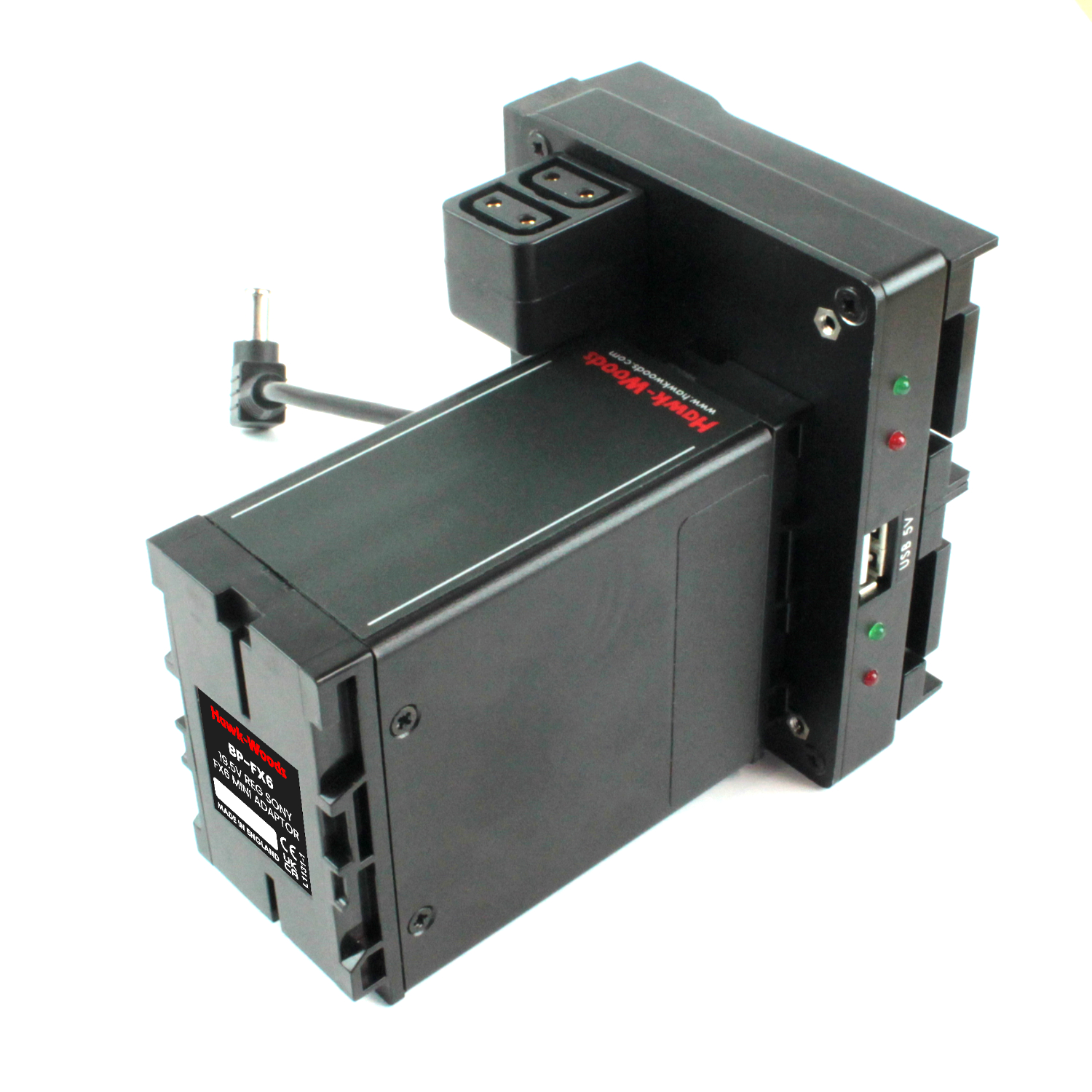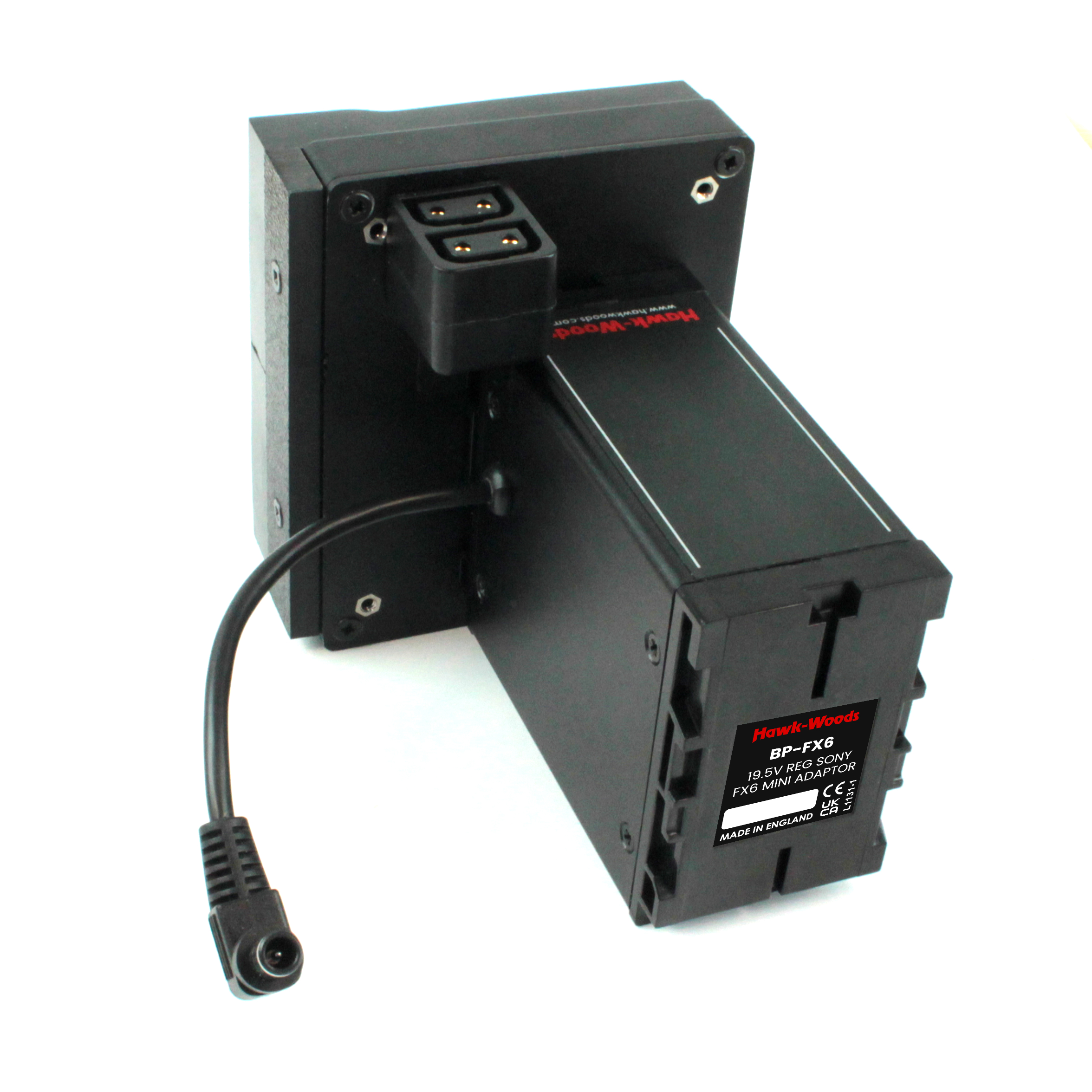 The BP-FX6 plate fits directly into the original battery port of the Sony FX6 via a mechanical BP-U battery fitting, allowing up to 2x BP-U batteries to be attached simultaneously for hot-swappable power and increased capacity.