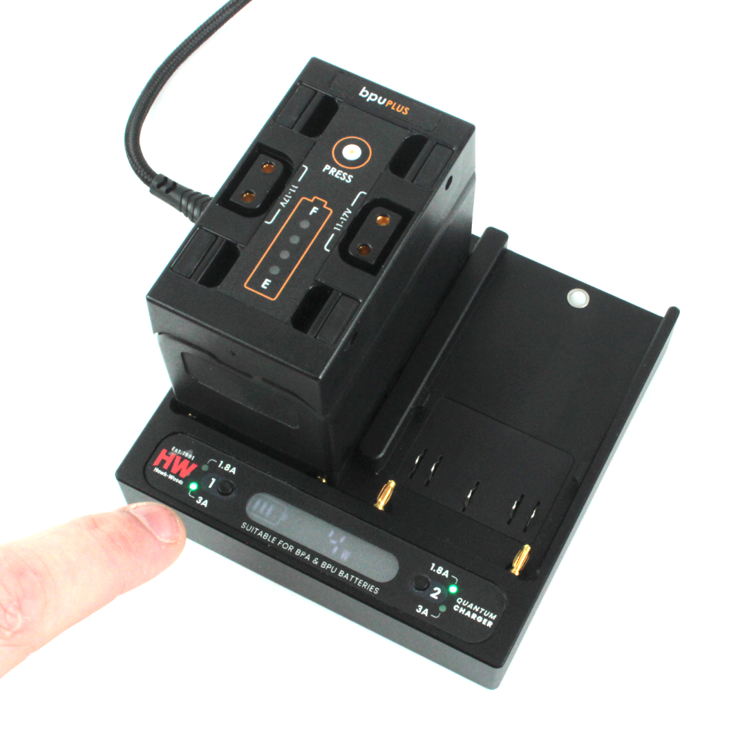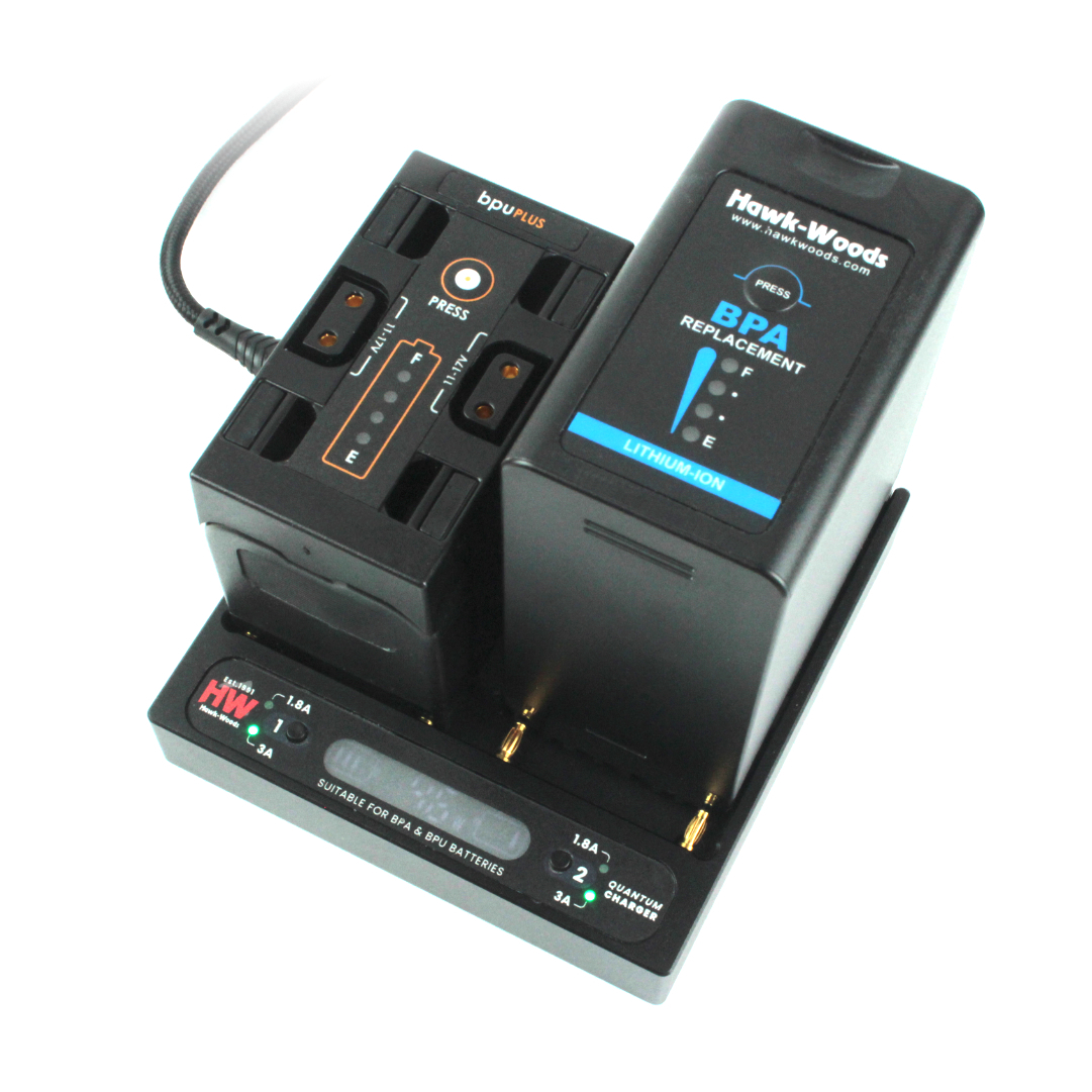 It’s a true simultaneous charger, so you can charge two BP-U batteries, two BP-A, or one of each.