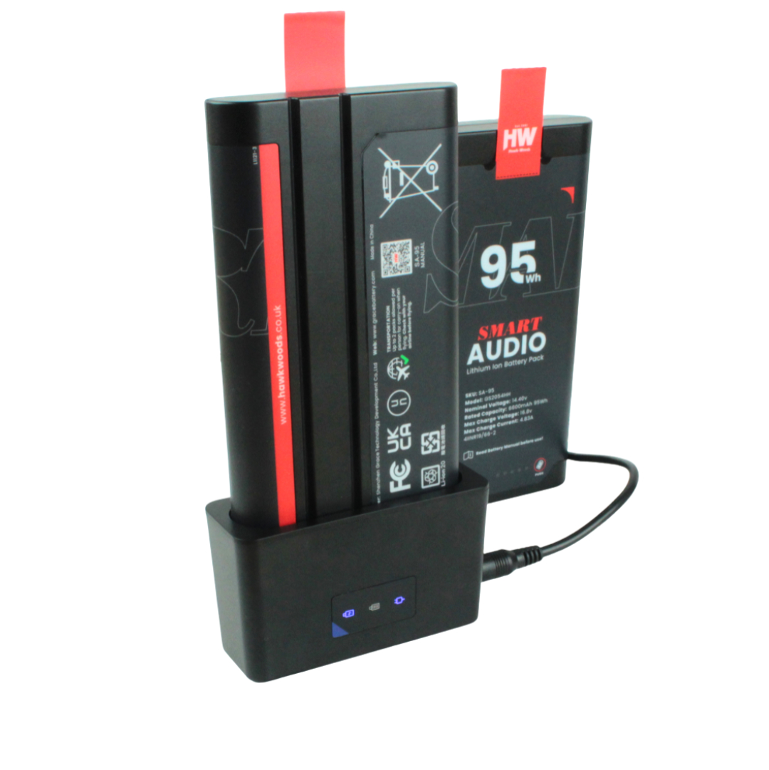 Built around an industry-standard 5-pin smart battery interface, suitable for HW's Smart Audio batteries & other compatible 5-pin smart packs.
